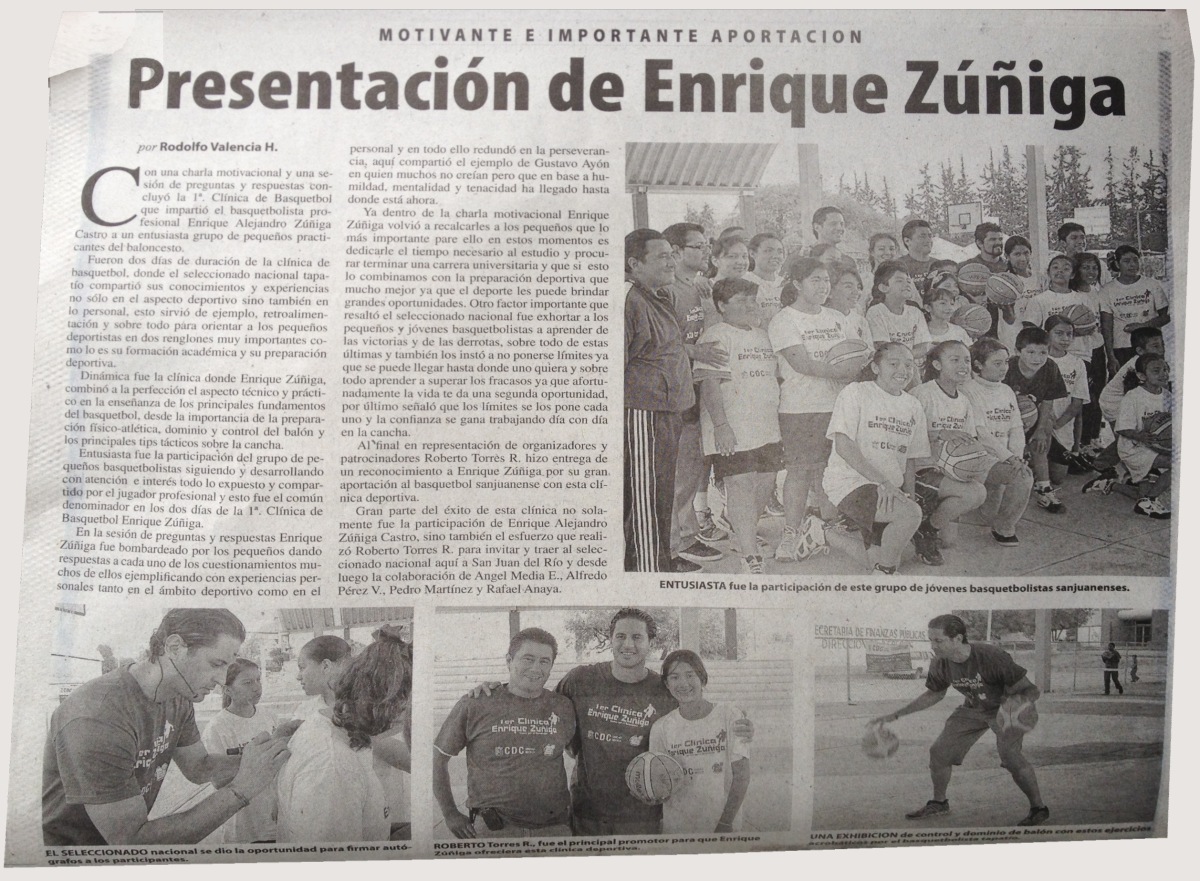 Laboratorio Centro de Diagnostico Clinico de Queretaro tubo la oportunidad de patrocinar un evento especial con Enrique Zuñiga seleccionado nacional del equipo de Baloncesto quien estubo en San Juan del Rio el pasado fin de semana para impartir una clinica a nuestros jovenes entusiastas del baloncesto.